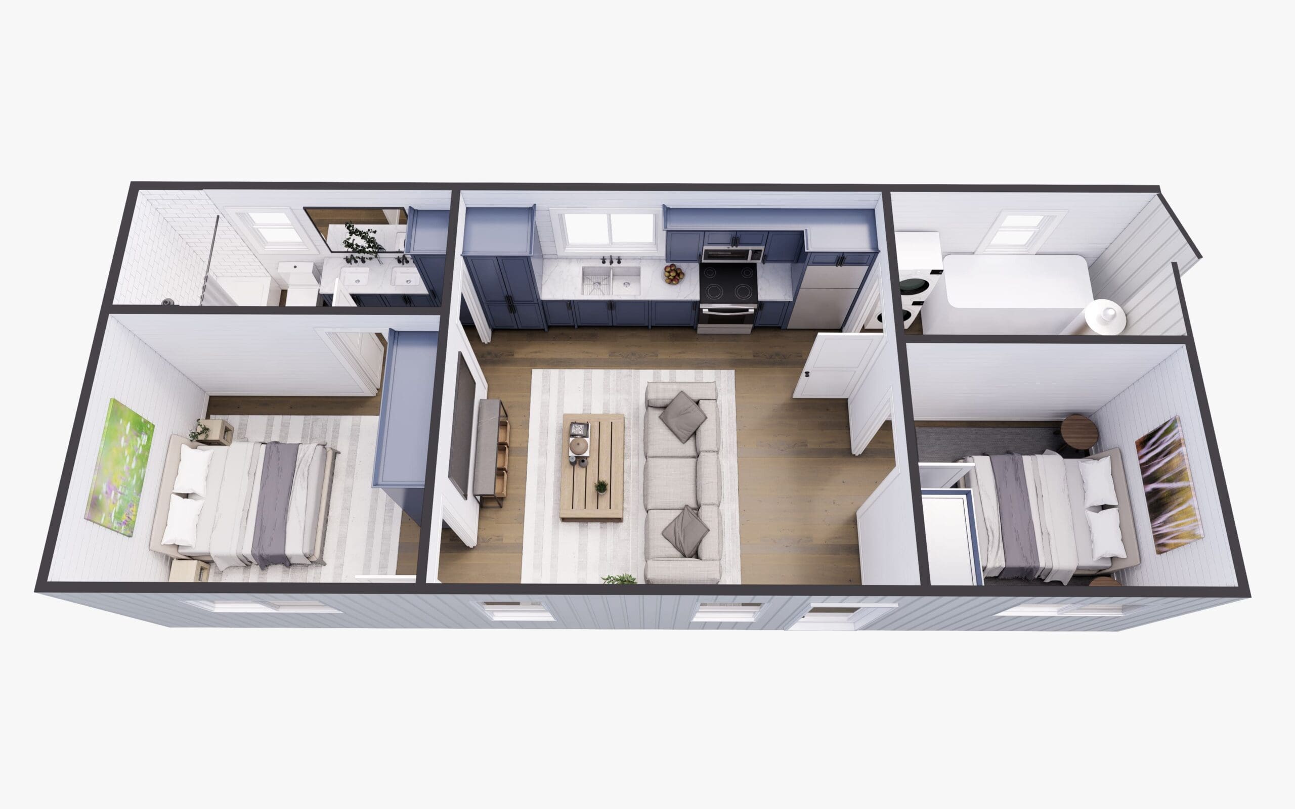 2 -40′ | 2 bedroom off-grid container home | 640 sq. ft.