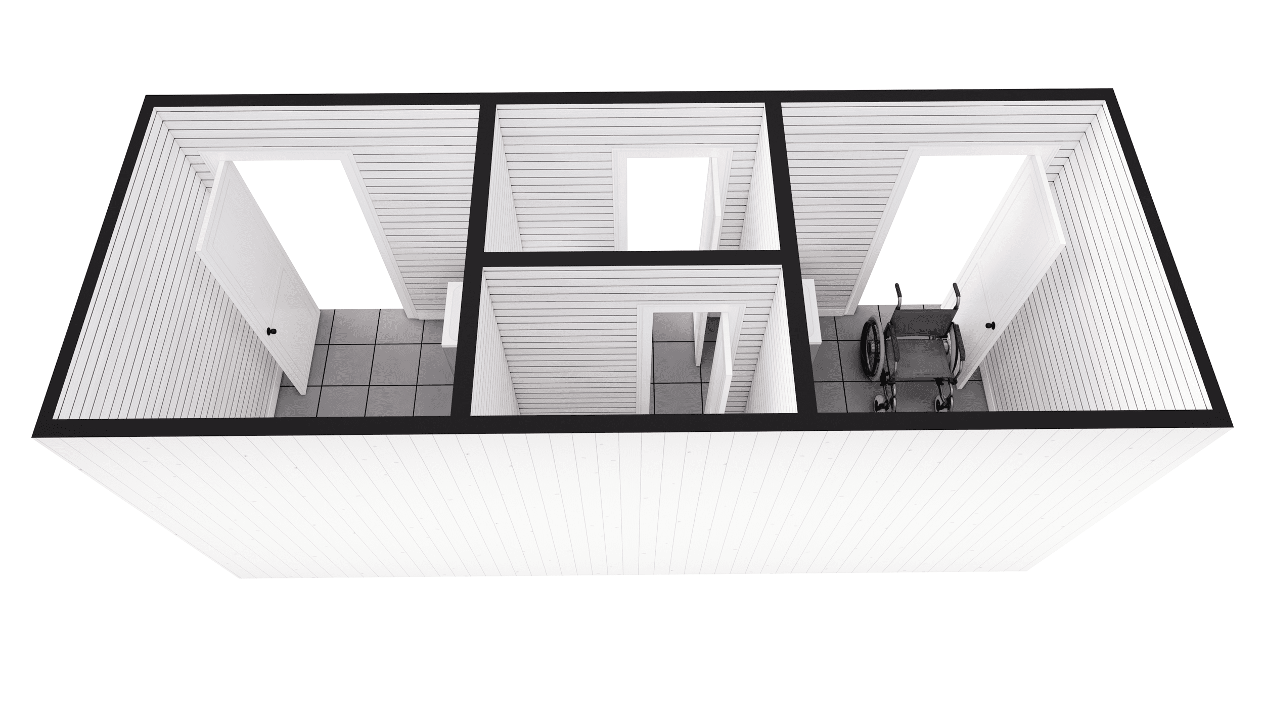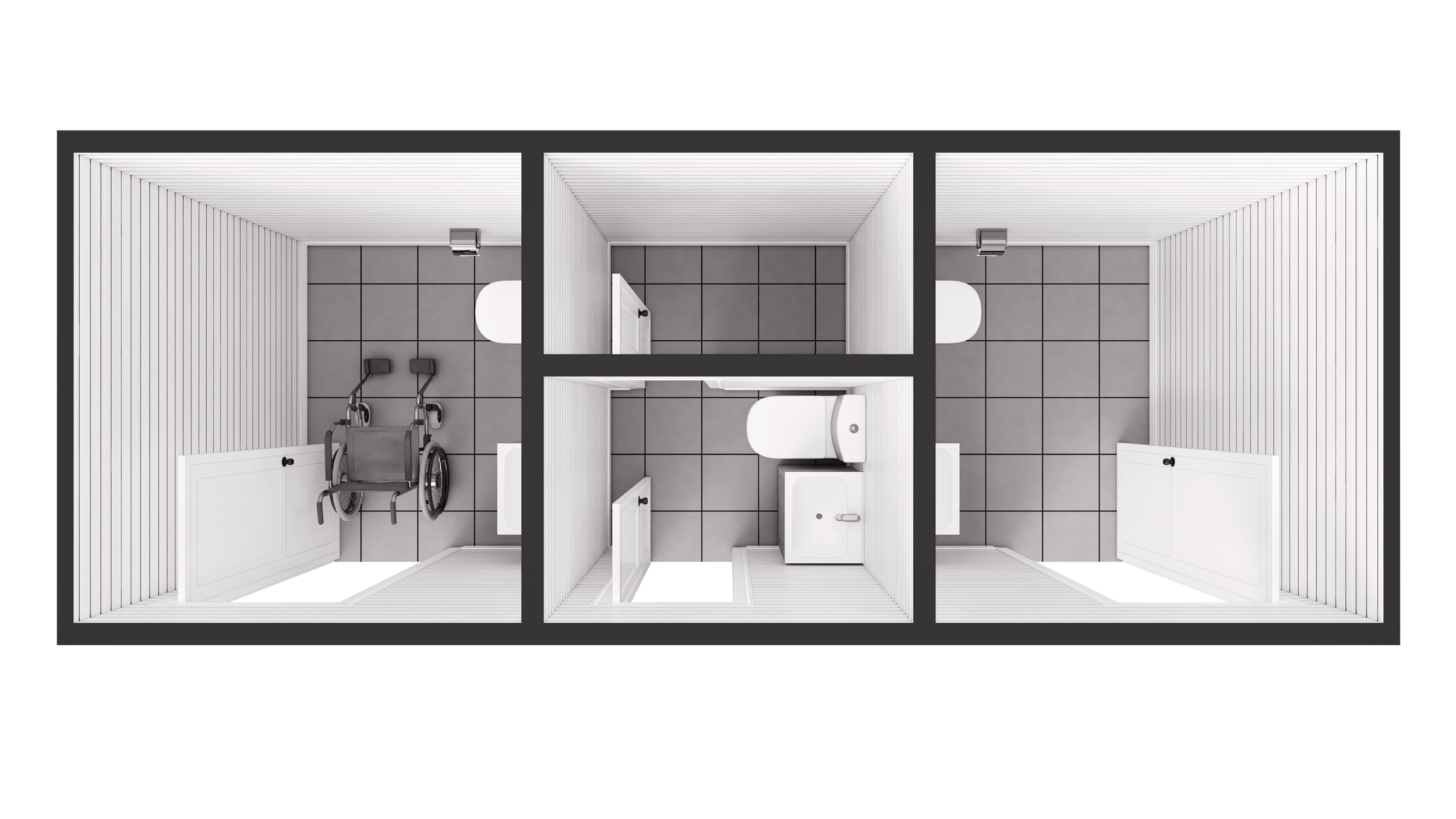 8’ X 20’ | 2 ADA Stalls, 1 Standard Stall (Centered) | 160 SQ FT