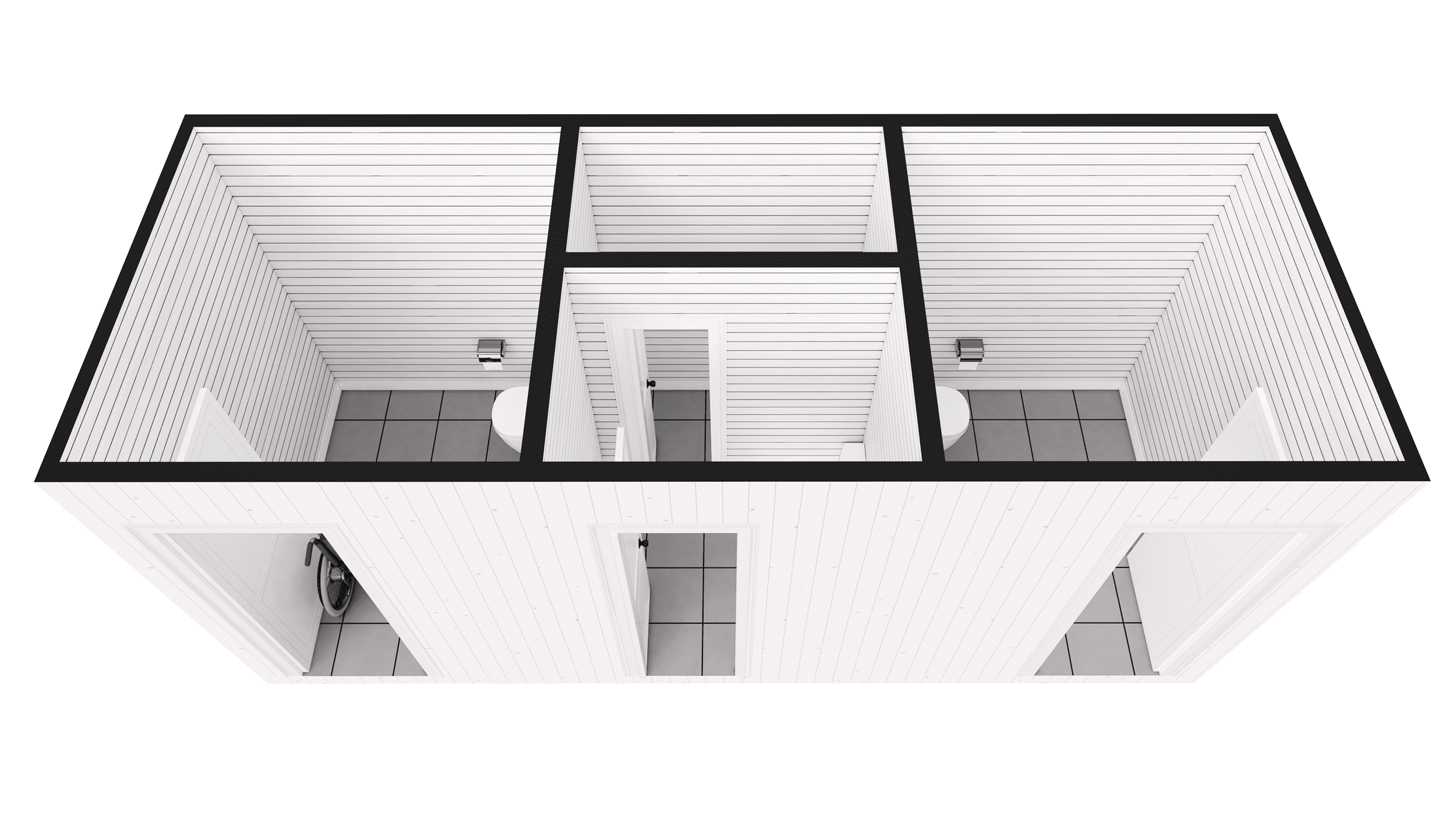 With a thoughtful layout and premium construction, this container bathroom provides lasting value in demanding environments. The centered bathroom stall configuration optimizes space while maintaining accessibility and privacy for all users.