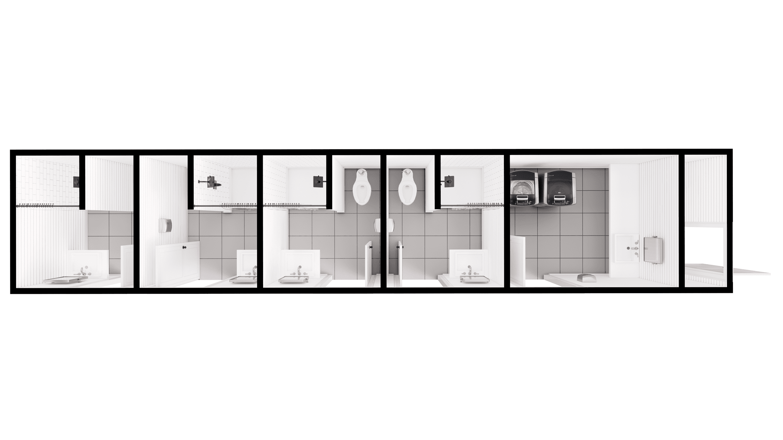 Designed for both restroom and laundry use, this portable unit provides a comprehensive solution for maintaining hygiene and convenience in one compact space. With high-quality materials and well-planned container modifications, this unit is built to withstand demanding environments.