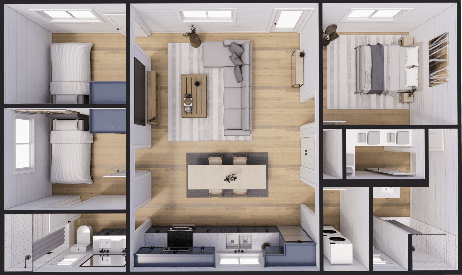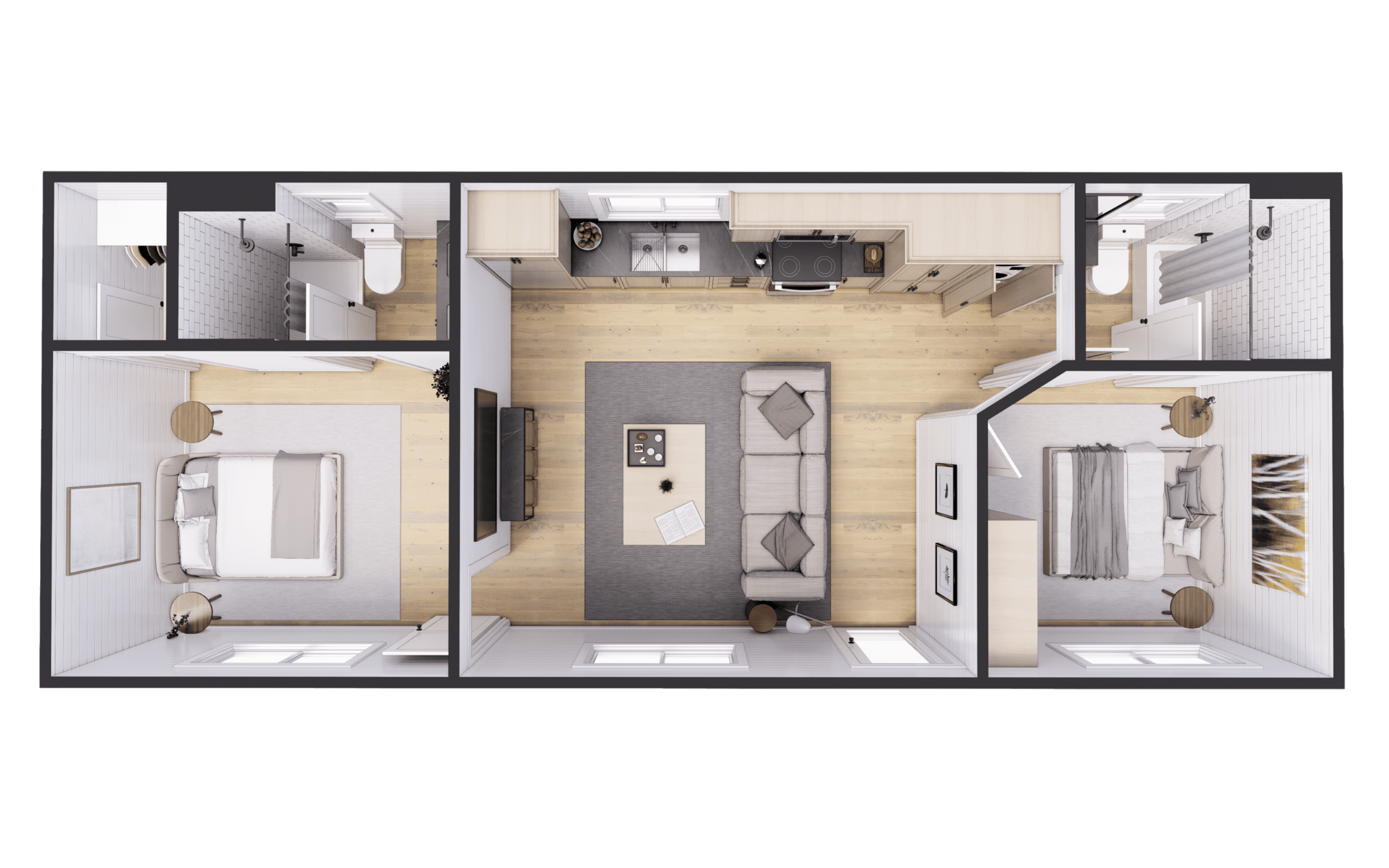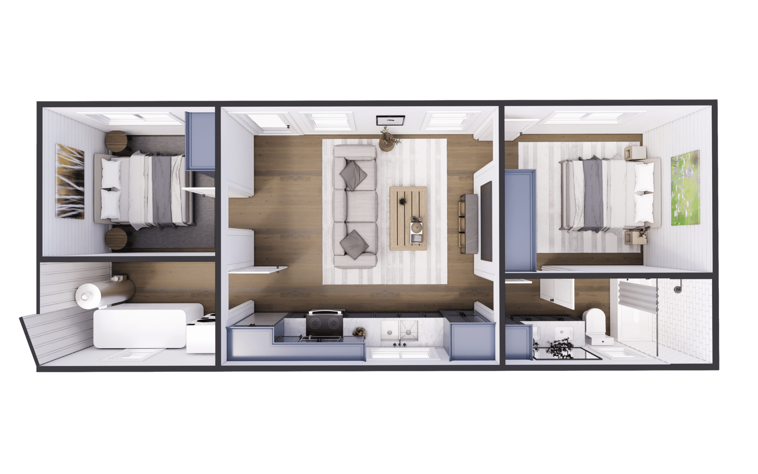 Need room for the whole family? Starting at 640 square feet, our three-bedroom container homes provide ample living space without sacrificing value-conscious pricing. With open-concept designs, customizable interiors, and options for upgraded finishes, these homes are perfect for modern families seeking green and sustainable living. Ideal for a primary residence or vacation home.