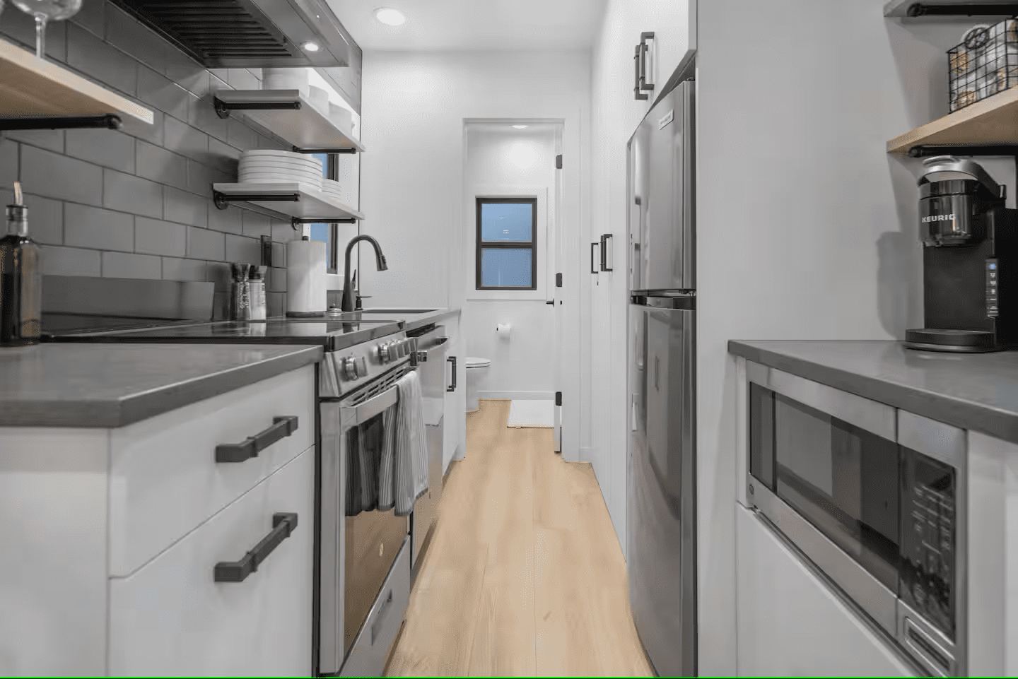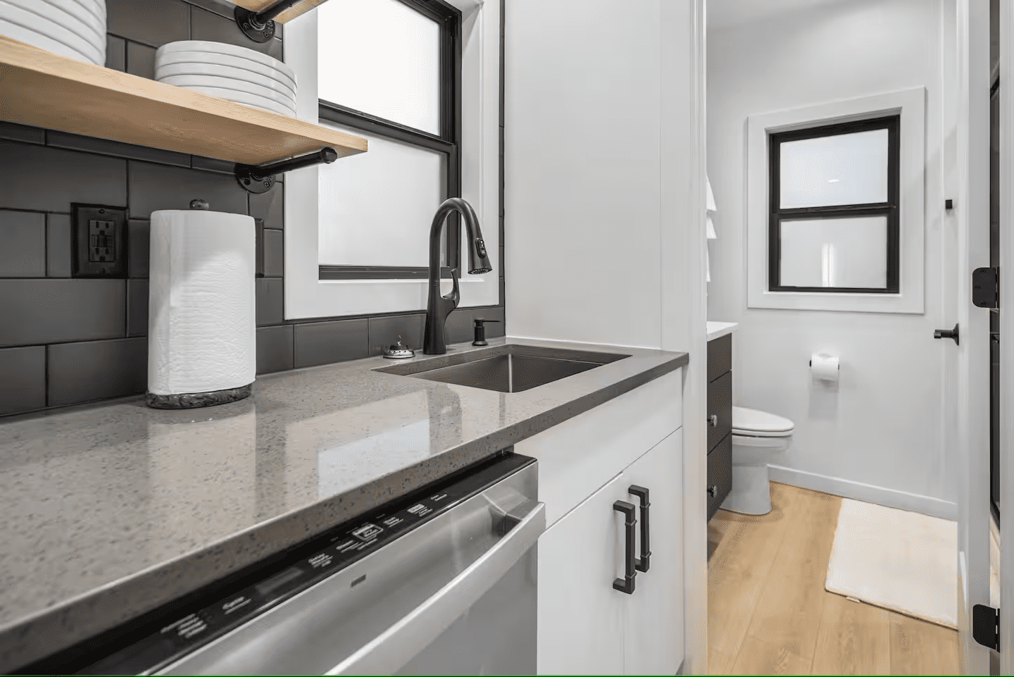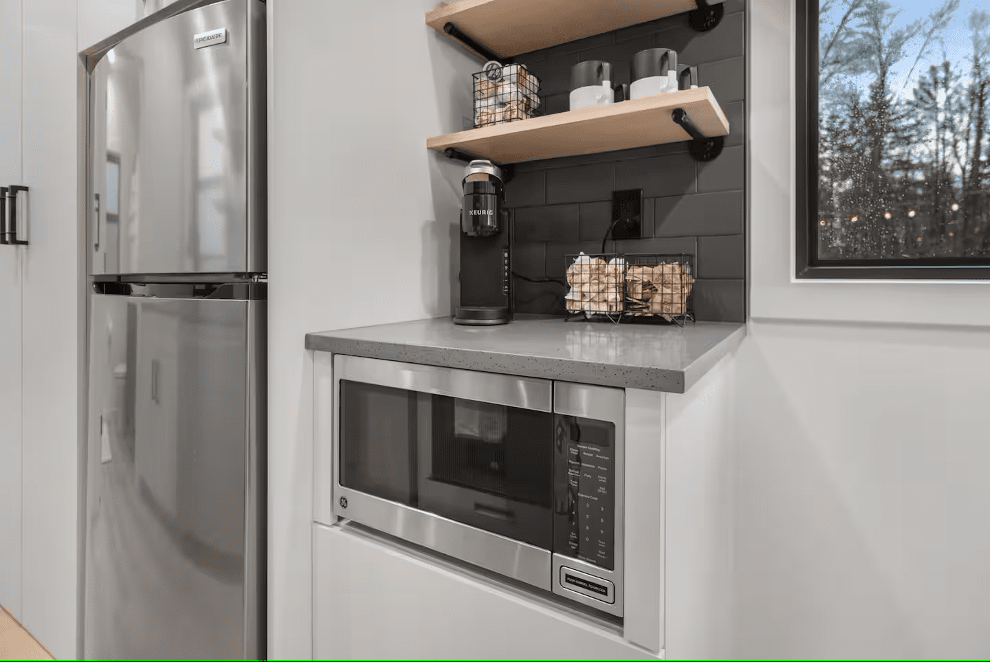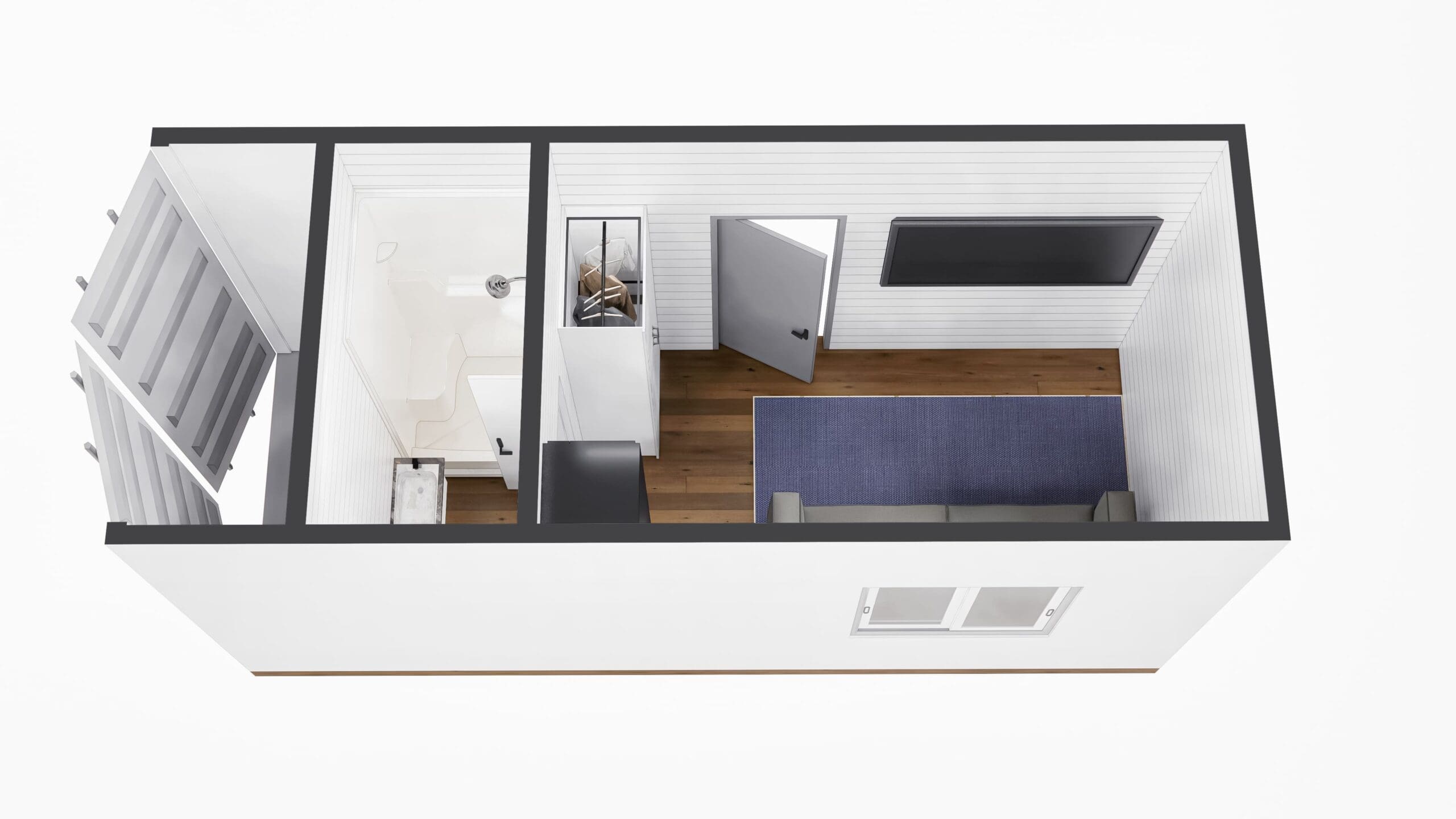 The Lookout model is the perfect solution for an affordable container home that will last for years and serve as your outdoor escape or backyard oasis. Below, you can see it’s outfitted with everything you need for a comfortable stay!