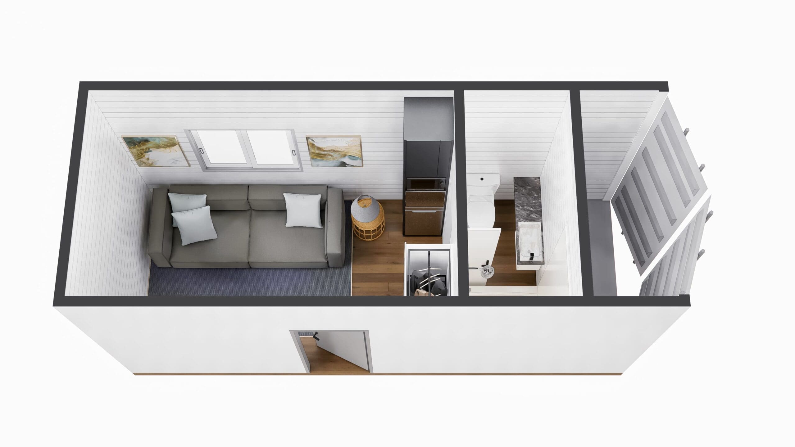 20′ | 160 sq ft | Studio Container Home with storage area