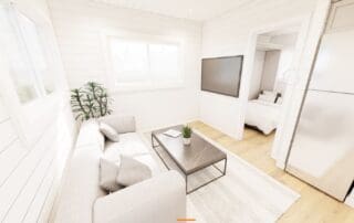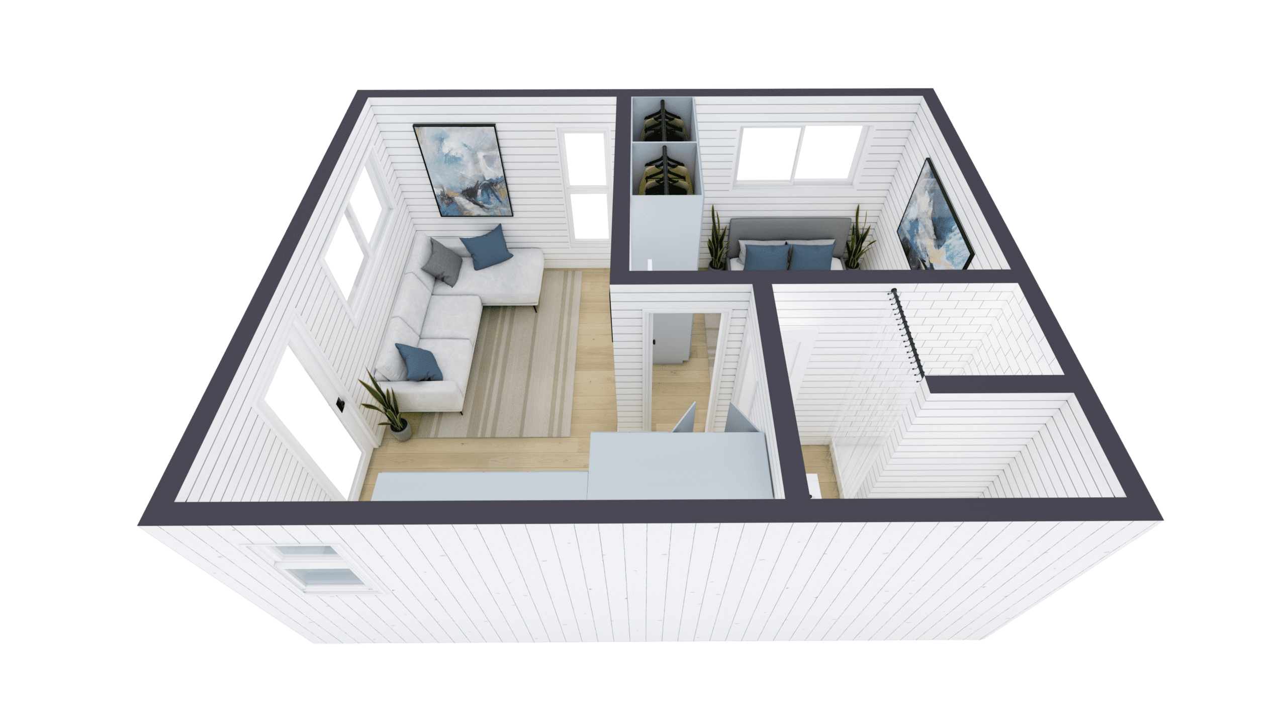 This modern, one-bedroom prefab container home is the perfect tiny house, designed with you in mind. Below, we’ve detailed a step-by-step overview of everything included with the Happy Twogether.