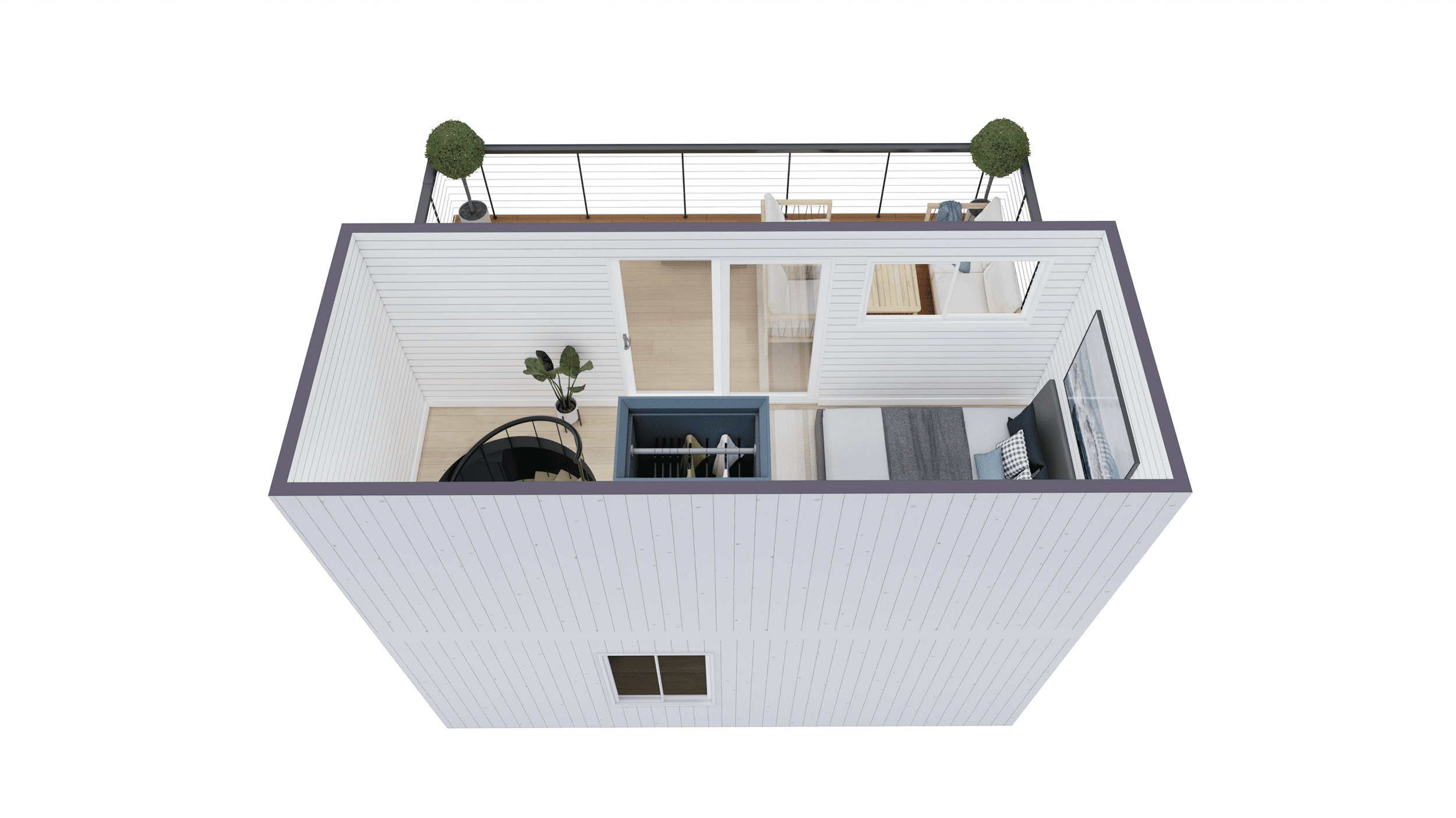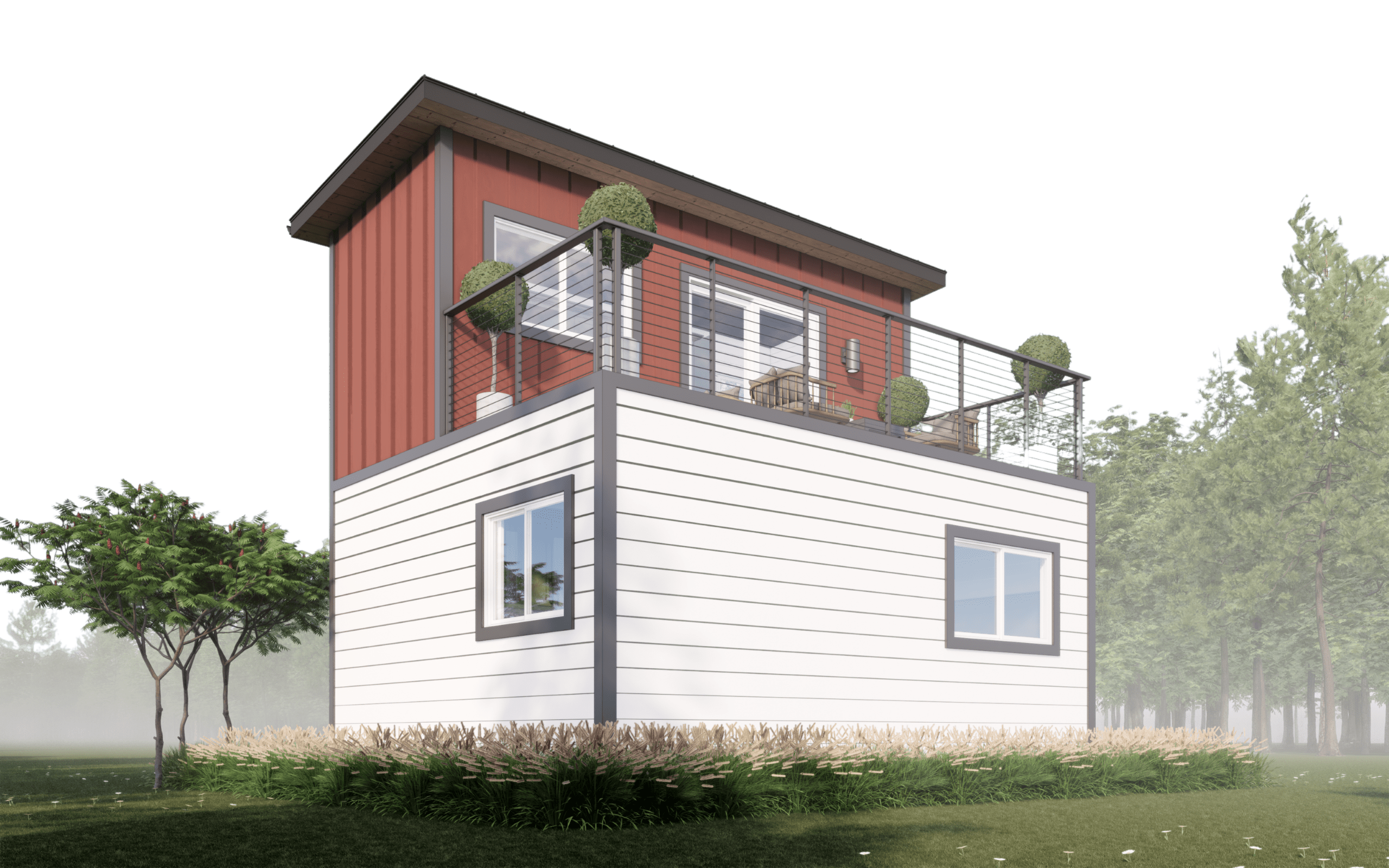 The Short Stack is a unique, space-saving tiny home that’s big on style, functionality, and sustainable living. This cool, two-story prefab stacked shipping container home design offers a beautiful rooftop deck and a spacious, comfortable living area equipped with everything you need for modern living. Whether you’re seeking a minimalist, eco-friendly lifestyle or simply love unique architecture, the Short Stack is the perfect fit.
