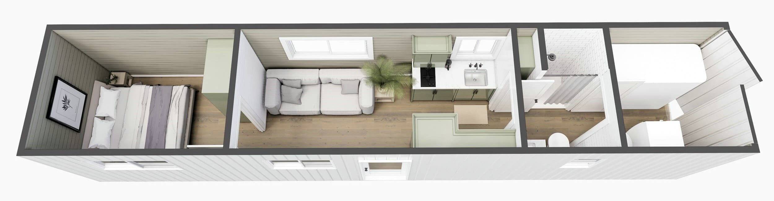 This one-bedroom prefab 40-foot container home is designed for minimalist living and offers maximum functionality and efficiency. Our detailed step-by-step list below will help you discover everything included in your dream home.