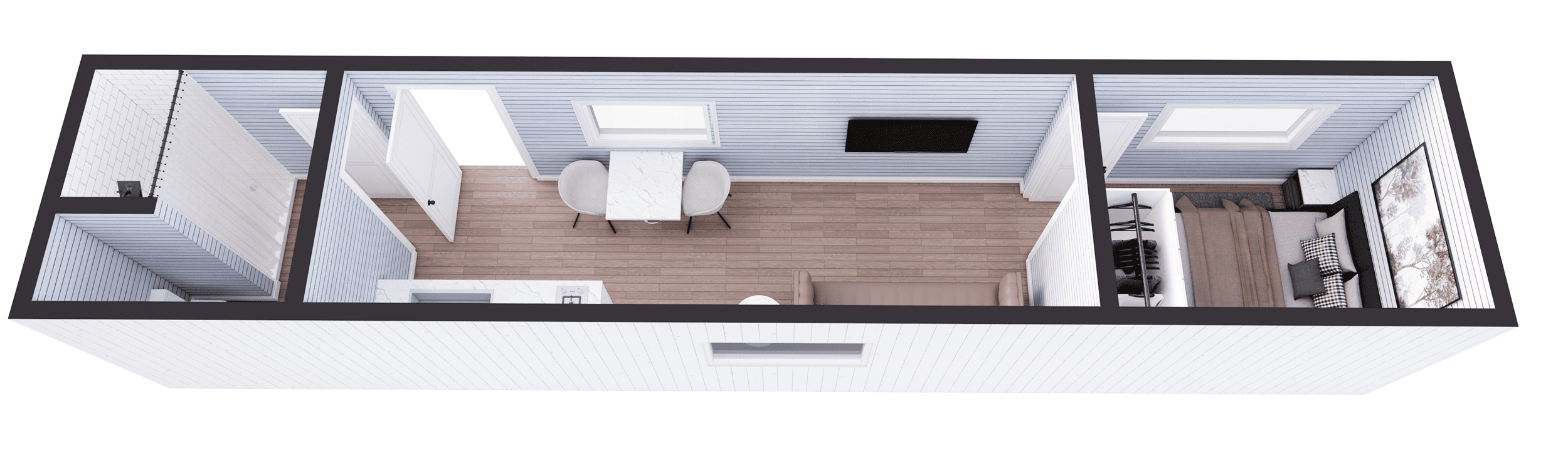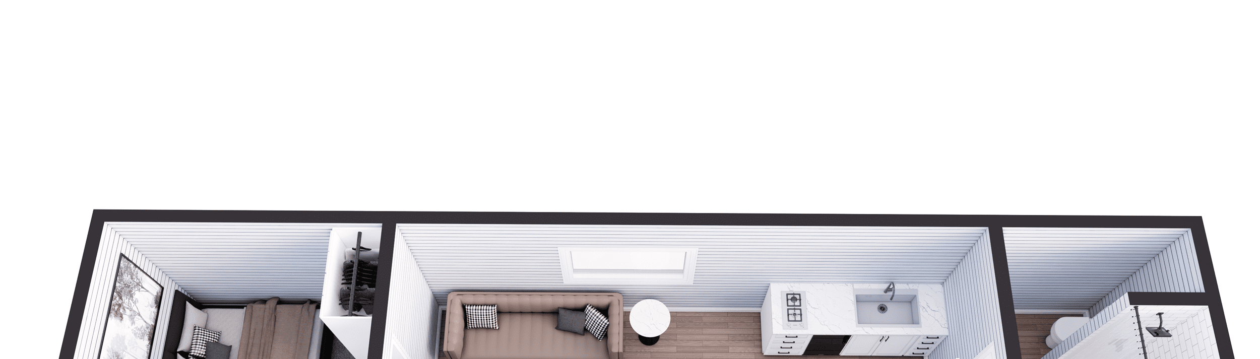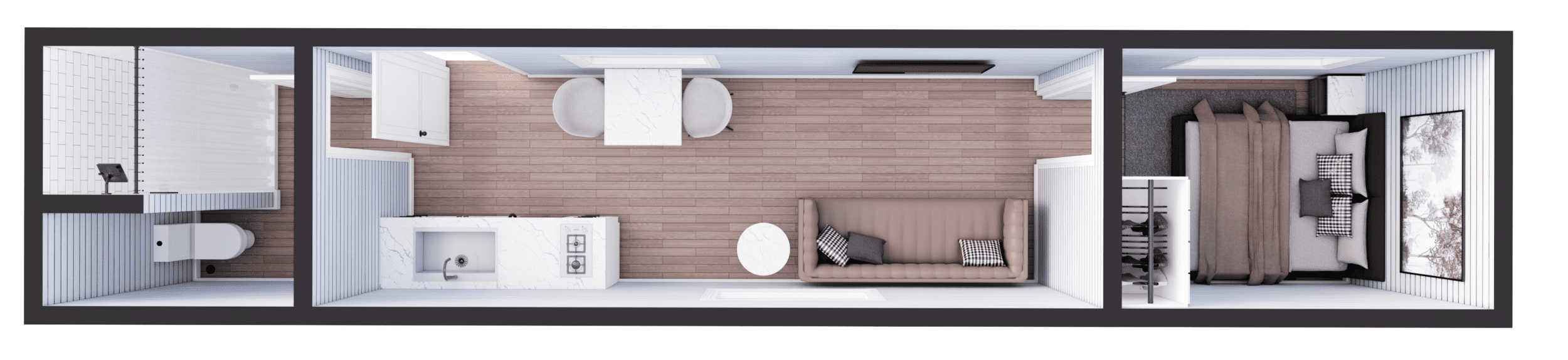 Introducing the Happy Shack, our budget-friendly take on comfortable container living. This 320 square foot 40ft shipping container home offers all the essentials for a cozy and functional living space. You’ll still find the efficient use of space and modern design you love, but with a focus on affordability. Enjoy a built-in wardrobe, nice kitchen, and a 4′ shower in the bathroom. The Happy Shack proves that smart living doesn’t have to break the bank.