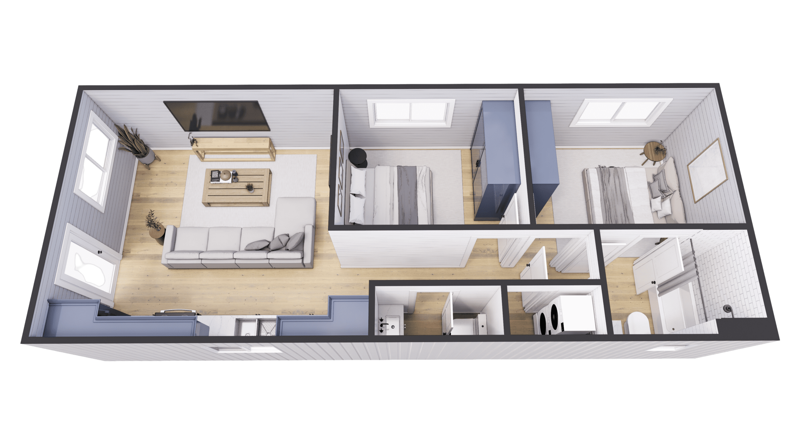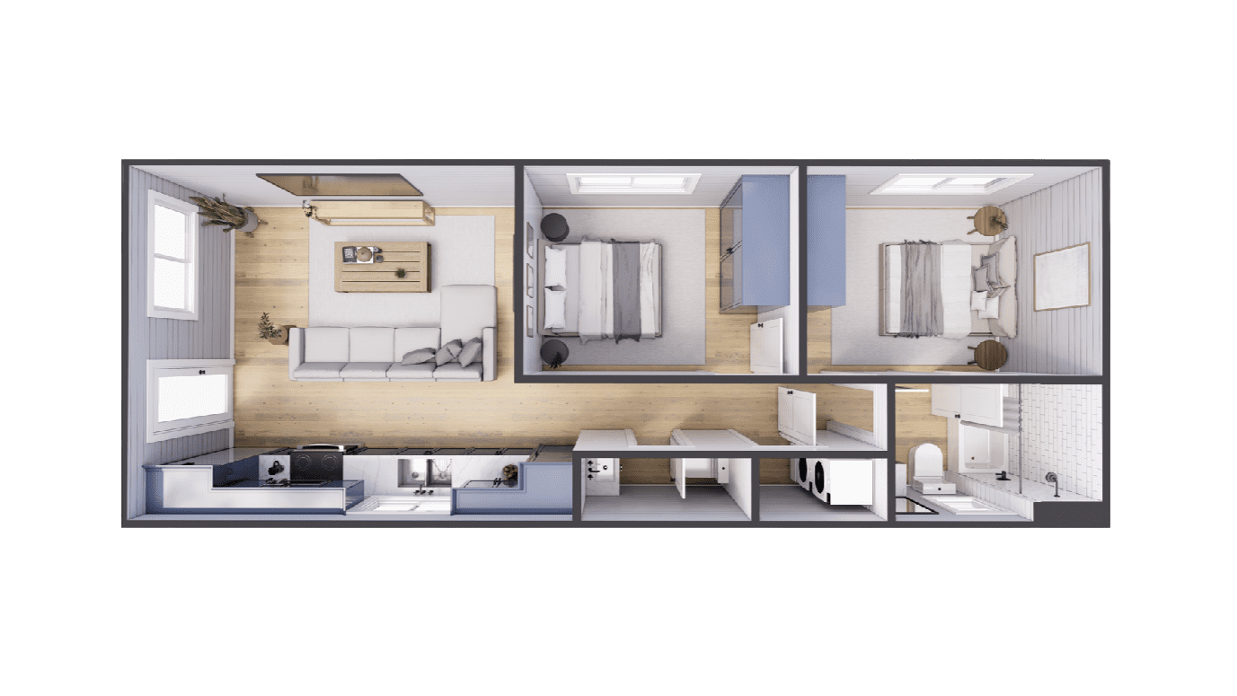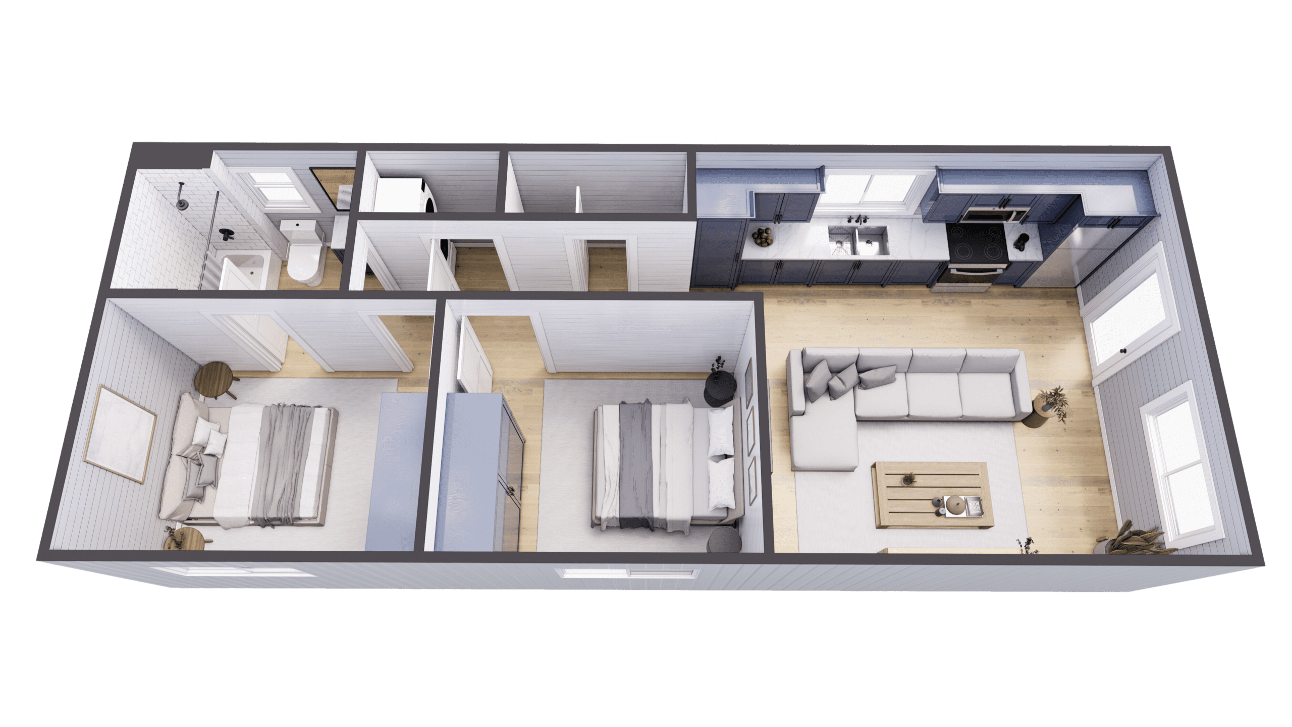 2 -40′ | 640 SQ. FT. | 2 Bedroom container home